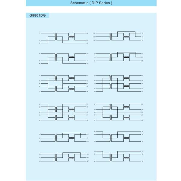 | G8802DG | 1CT:1CT | 1CT:1CT | 350uH Min | 0.5uH max | 35pF Max | 0.9 Max | 1.2 Max | ||||